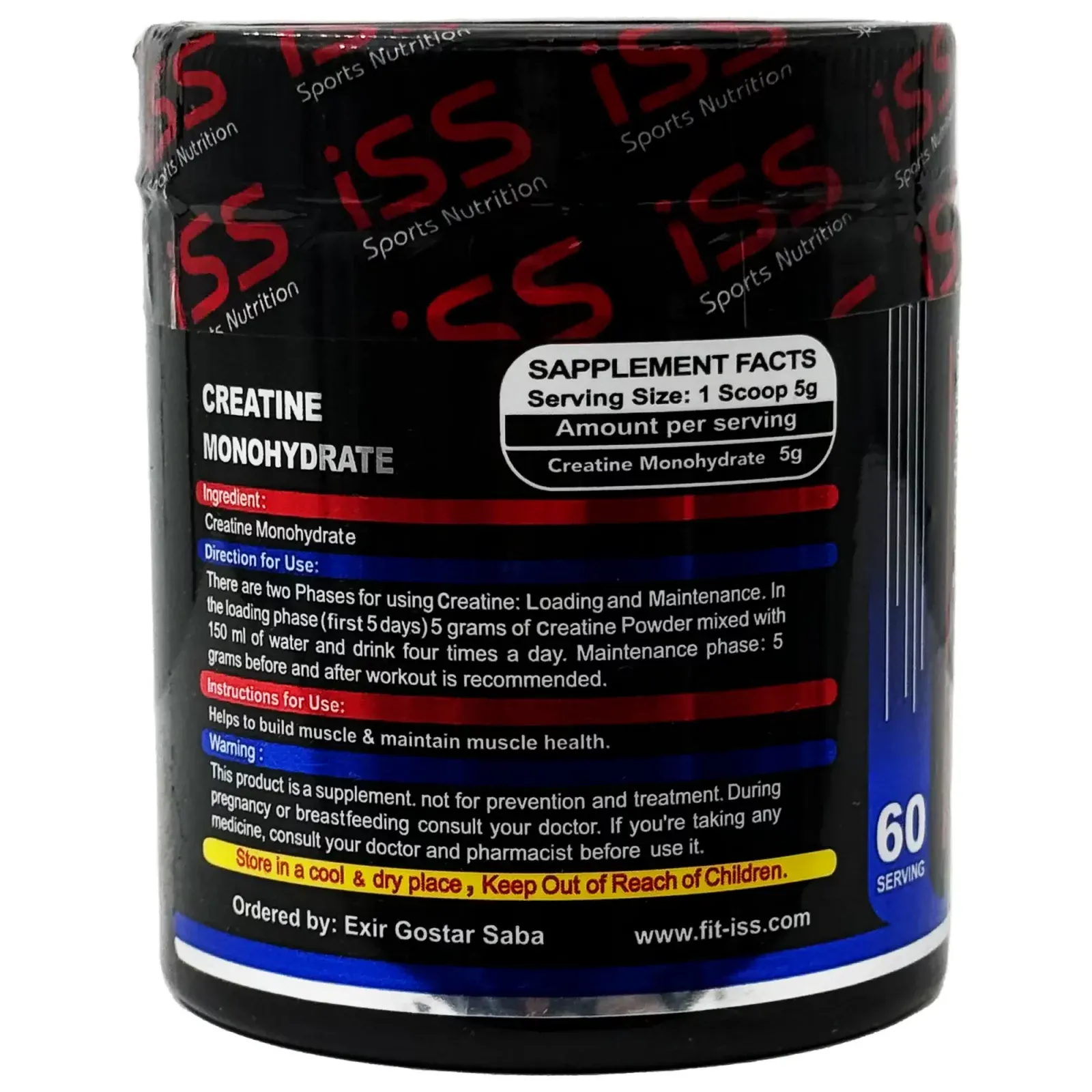 پودر کراتین مونوهیدرات 300 گرمی ISS (تاریخ انقضا بیشتر از 20 ماه) - 8 صبح فردا تحویل پست/تیپاکس می شود