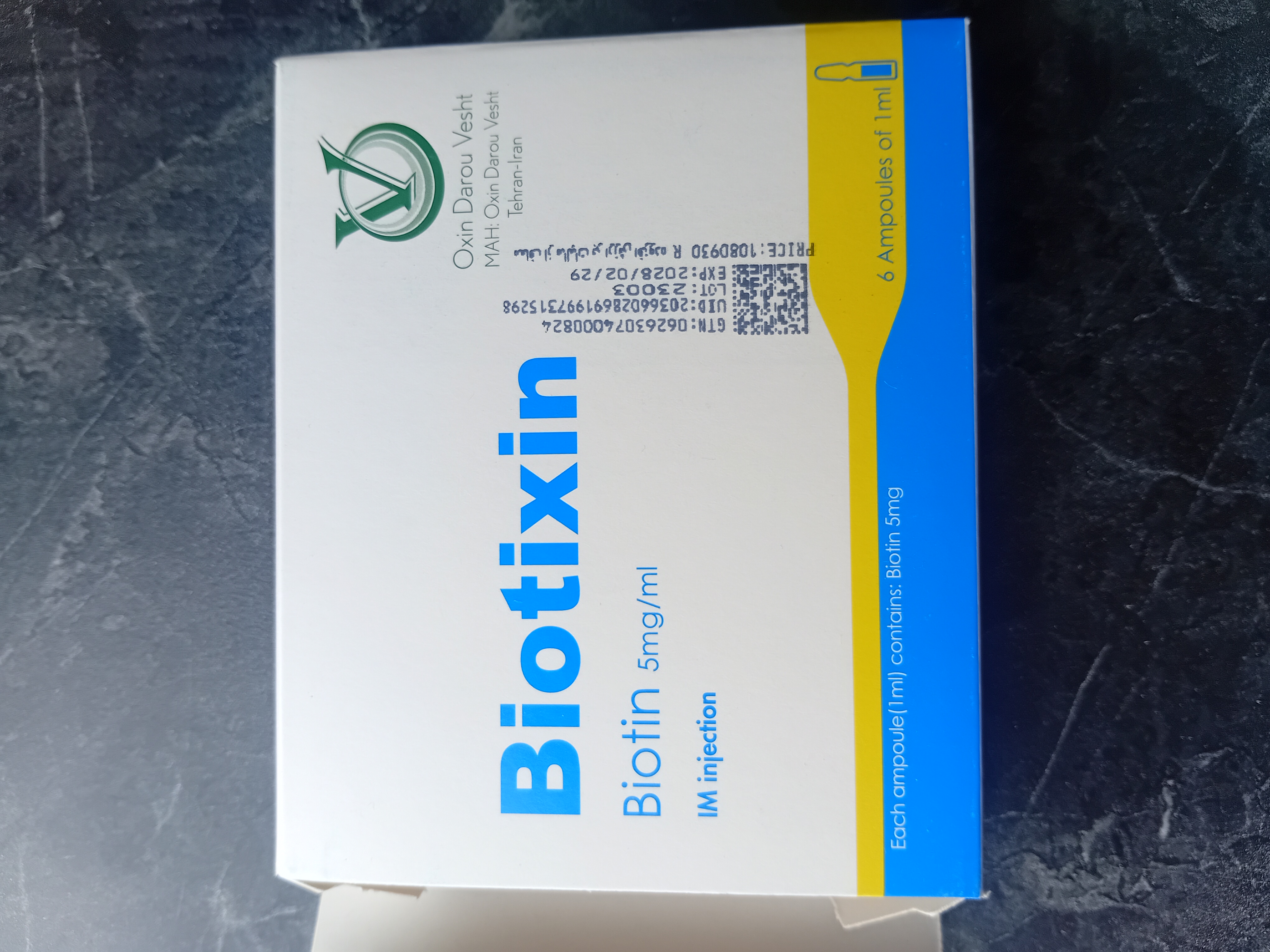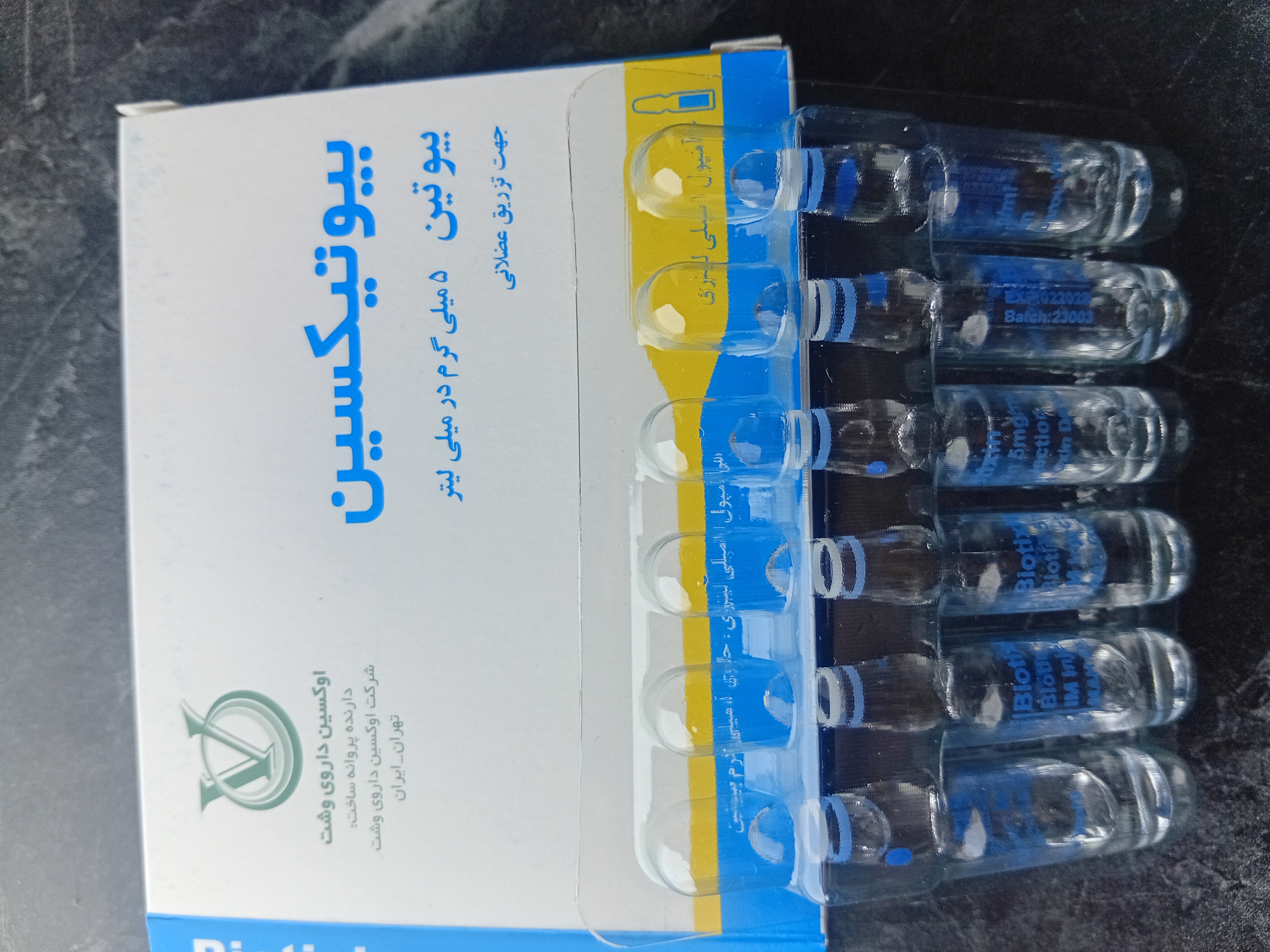 آمپول بیوتیکسین 5 میلی گرم بیوتین اوکسین داروی وشت 6 عدد(تاریخ انقضا 2028/02/29) کپی